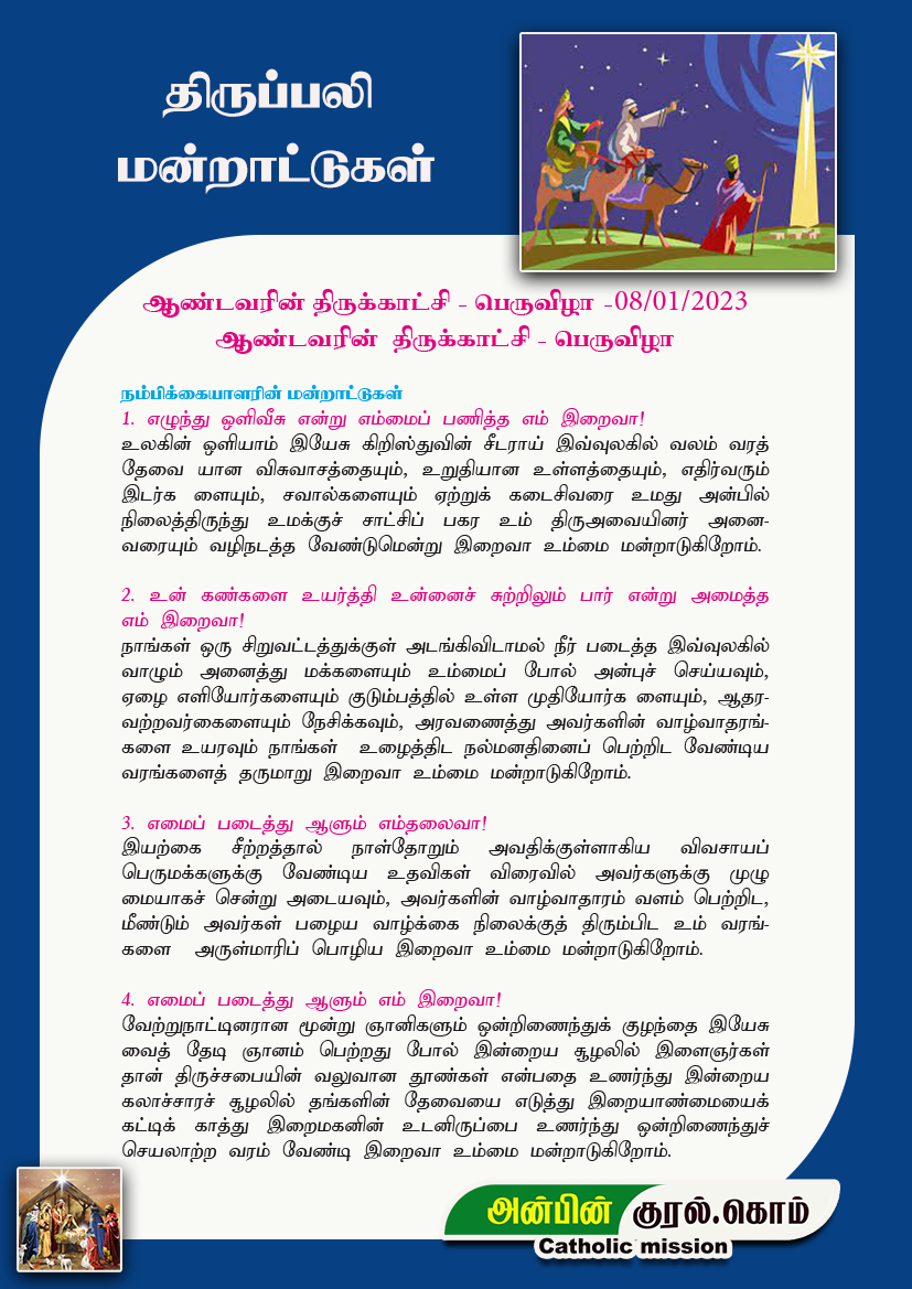 ஆண்டவரின் திருக்காட்சி – பெருவிழா Post navigation ஆண்டவரின் திருக்காட்சி – பெருவிழா -08/01/2023 சிலுவை அடையாளம்
