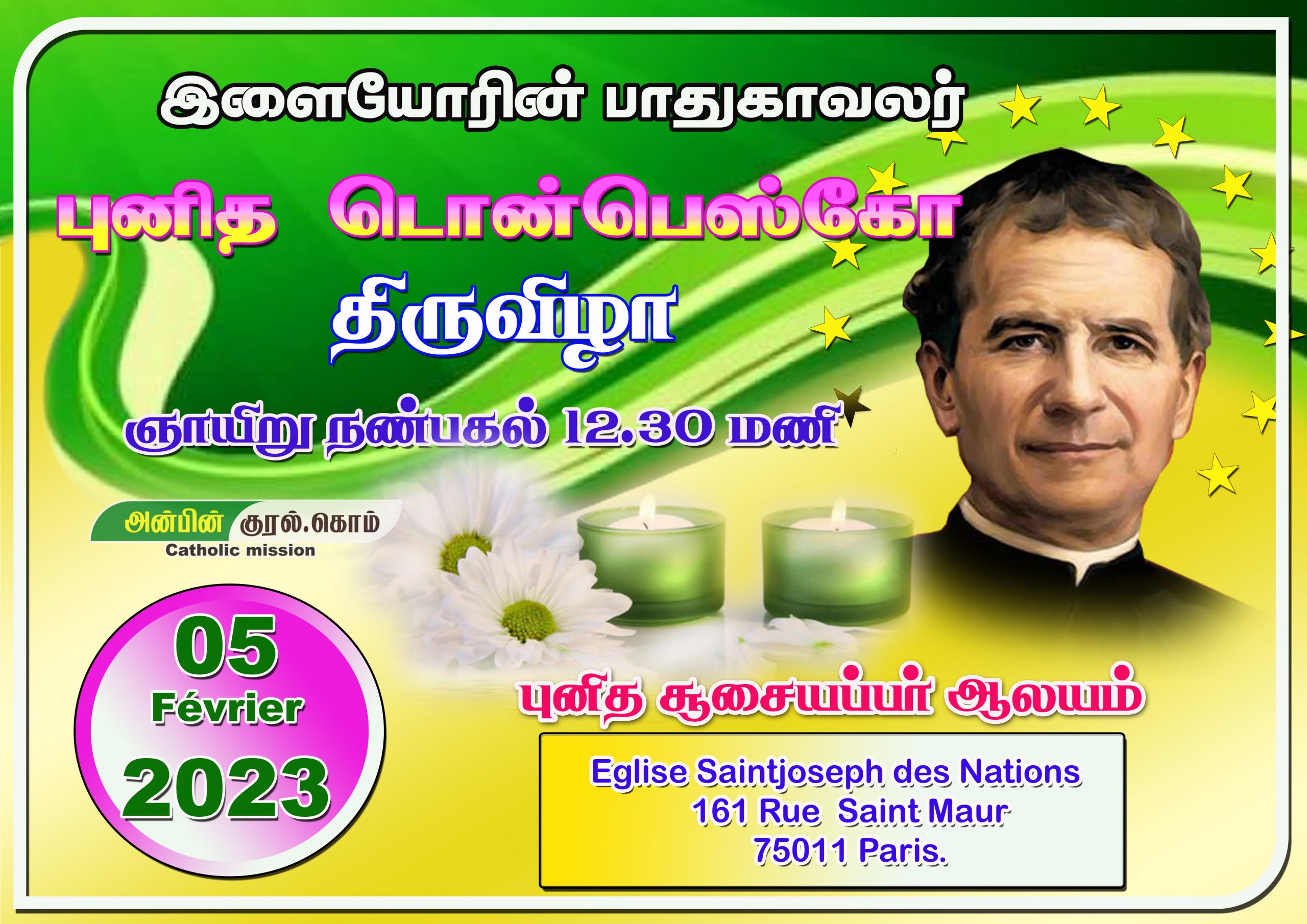 Post navigation இலங்கைத்தமிழ்கத்தோலிக்க ஆன்மிகப்பணியகம் நடாத்தும் இளைஞர்கள் யுவதிகளுக்கான திருமண அருட்சாதன ஆயத்த முதல் அமர்வு எதிர்வரும் 04.02.2023 சனிக்கிழமை ஒப்புரவு அன்னை சிற்றாலய மண்டபத்தில் காலை 9.00 மணிக்கு ஆரம்பமாகும் இந்தவருடமும் 2023 அடுத்தவருடமும் 2024 திருமணம் அருட்சாதனம் பெற இருப்பவர்கள் இந்த அமர்வில் கலந்து உங்கள் ஞானக்கடமையை மேற்கொள்ளுமாறு அறியத்தருகின்றது ஆன்மிகப்பணியகம் நன்றி. காணிக்கை அன்னை திருவிழா Epinay பணித்தளம் 04.02.2023 – 16h00