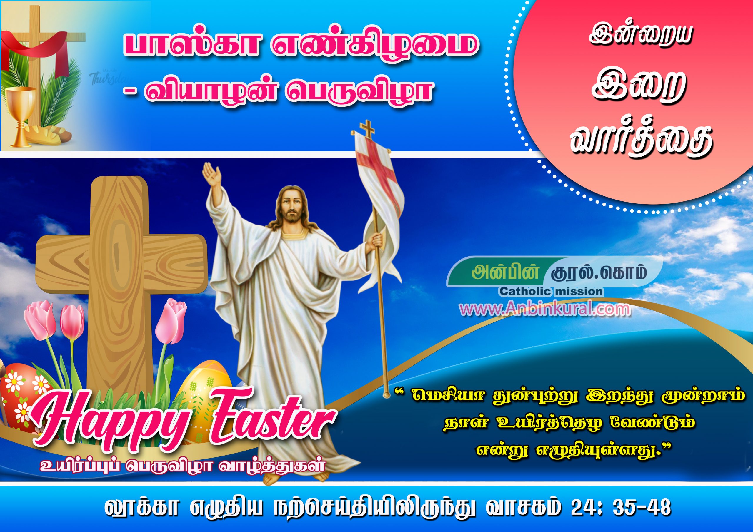 அல்லேலூயா, அல்லேலூயா! ஆண்டவர் தோற்றுவித்த வெற்றியின் நாள் இதுவே; இன்று அக்களிப்போம்; அகமகிழ்வோம். அல்லேலூயா.