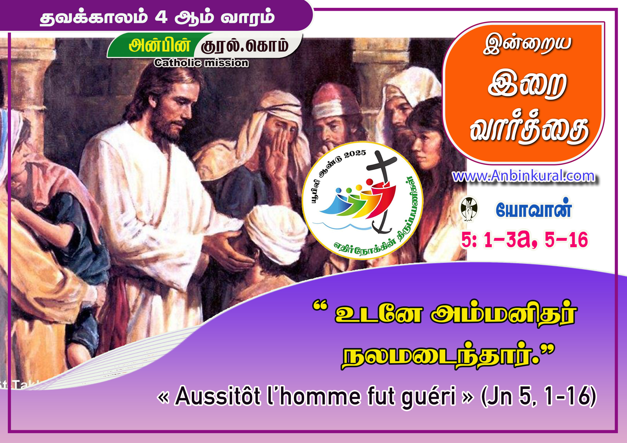 ✠ யோவான் எழுதிய தூய நற்செய்தியிலிருந்து வாசகம் 5: 1-3a, 5-16