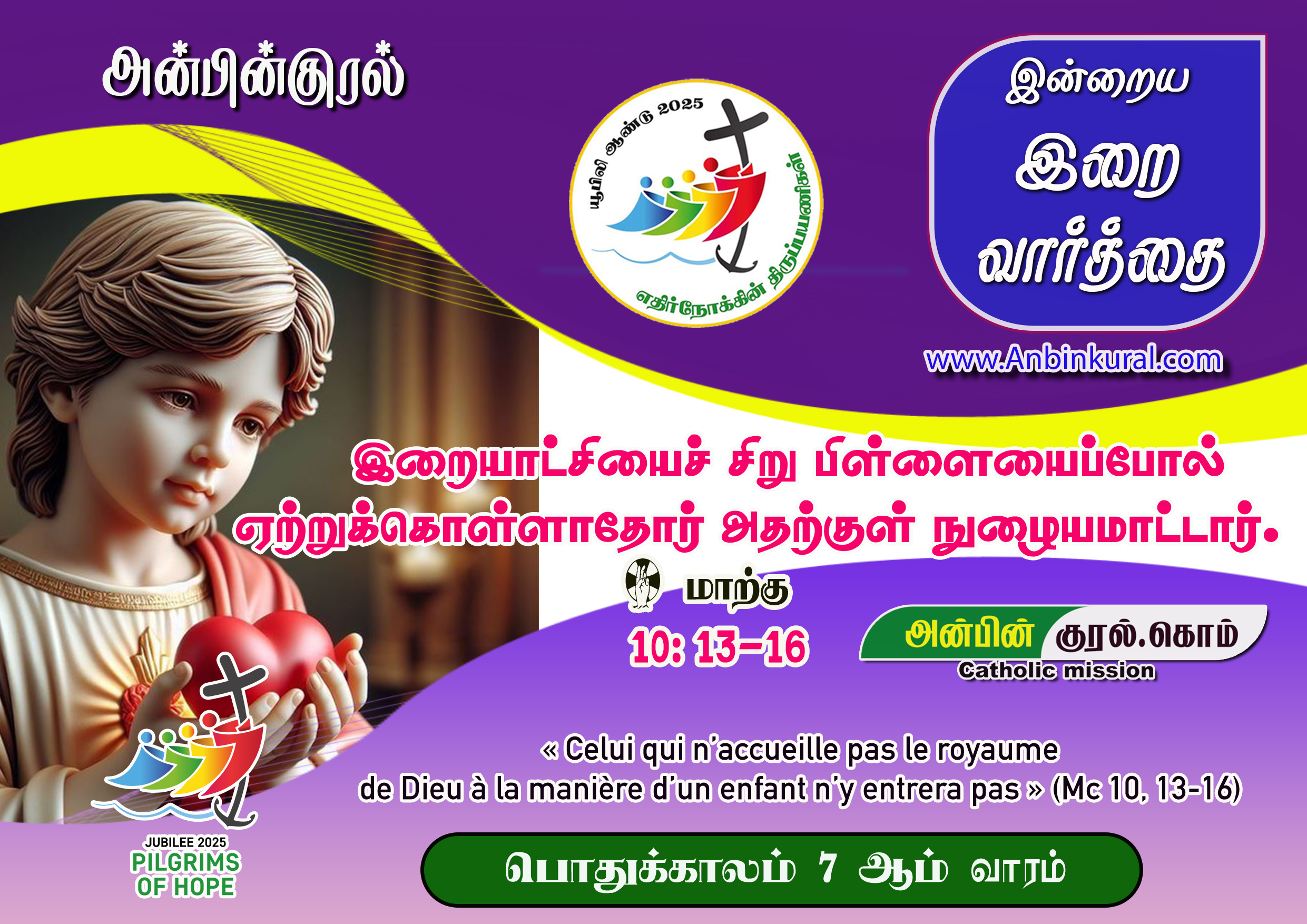 ✠ மாற்கு எழுதிய தூய நற்செய்தியிலிருந்து வாசகம் 10: 13-16