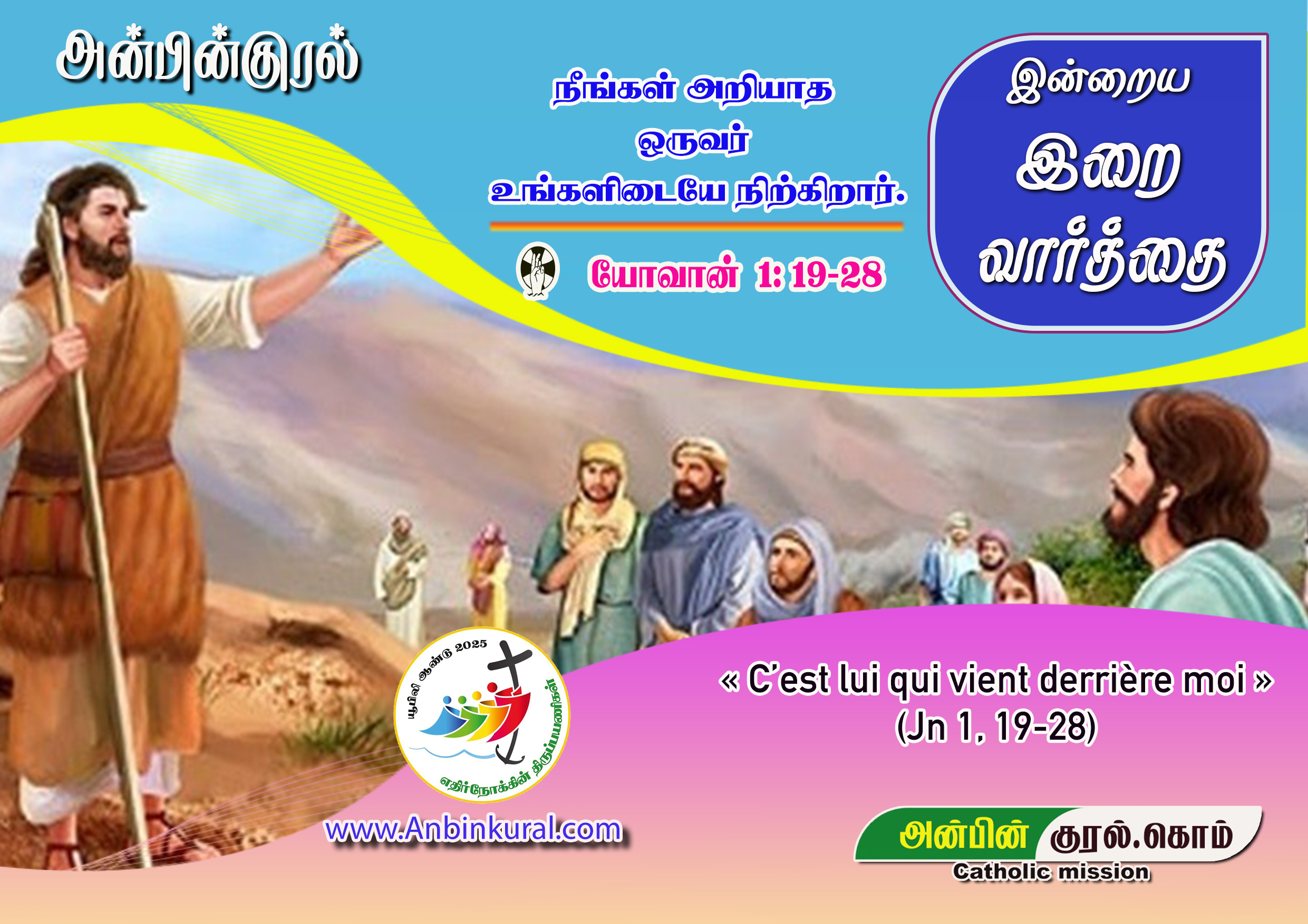 பரிசேயரால் அனுப்பப்பட்ட அவர்கள் அவரிடம், “நீர் மெசியாவோ எலியாவோ வர வேண்டிய இறைவாக்கினரோ அல்லவென்றால் ஏன் திருமுழுக்குக் கொடுக்கிறீர்?” என்று கேட்டார்கள். யோவான் அவர்களிடம், “நான் தண்ணீரால் திருமுழுக்குக் கொடுக்கிறேன். நீங்கள் அறியாத ஒருவர் உங்களிடையே நிற்கிறார்; அவர் எனக்குப்பின் வருபவர்; அவருடைய மிதியடிவாரை அவிழ்க்கக்கூட எனக்குத் தகுதியில்லை” என்றார். இவை யாவும் யோர்தான் ஆற்றுக்கு அக்கரையிலுள்ள பெத்தானியாவில் நிகழ்ந்தன. அங்குதான் யோவான் திருமுழுக்குக் கொடுத்துக் கொண்டிருந்தார்.
