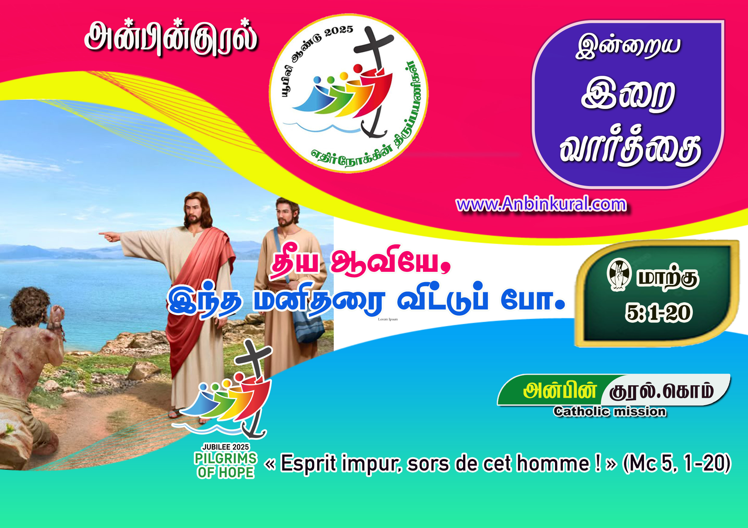 ✠ மாற்கு எழுதிய தூய நற்செய்தியிலிருந்து வாசகம் 5: 1-20