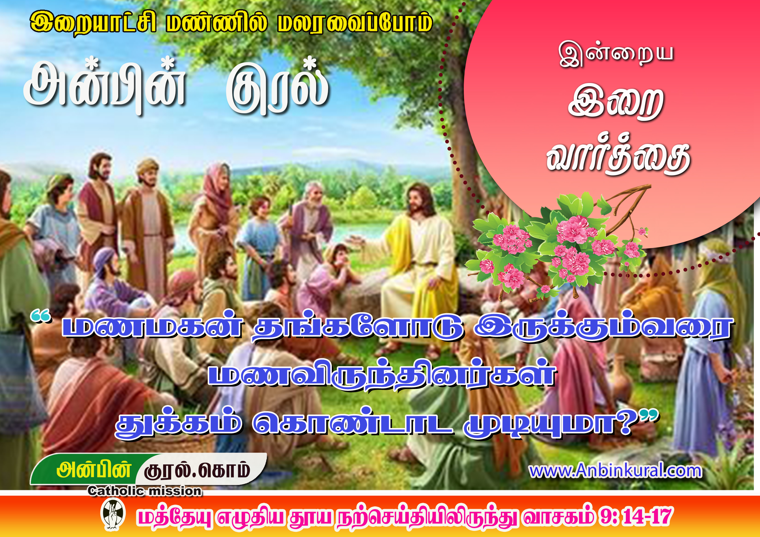 யோவானின் சீடர் இயேசுவிடம் வந்து, “நாங்களும் பரிசேயரும் அதிகமாக நோன்பு இருக்க, உம்முடைய சீடர்கள் ஏன் நோன்பு இருப்பதில்லை?” என்றனர். அதற்கு இயேசு அவர்களை நோக்கி, “மணமகன் தங்களோடு இருக்கும்வரை மணவிருந்தினர்கள் துக்கம் கொண்டாட முடியுமா? மணமகன் அவர்களை விட்டுப் பிரியவேண்டிய காலம் வரும். அப்பொழுது அவர்களும் நோன்பு இருப்பார்கள்.