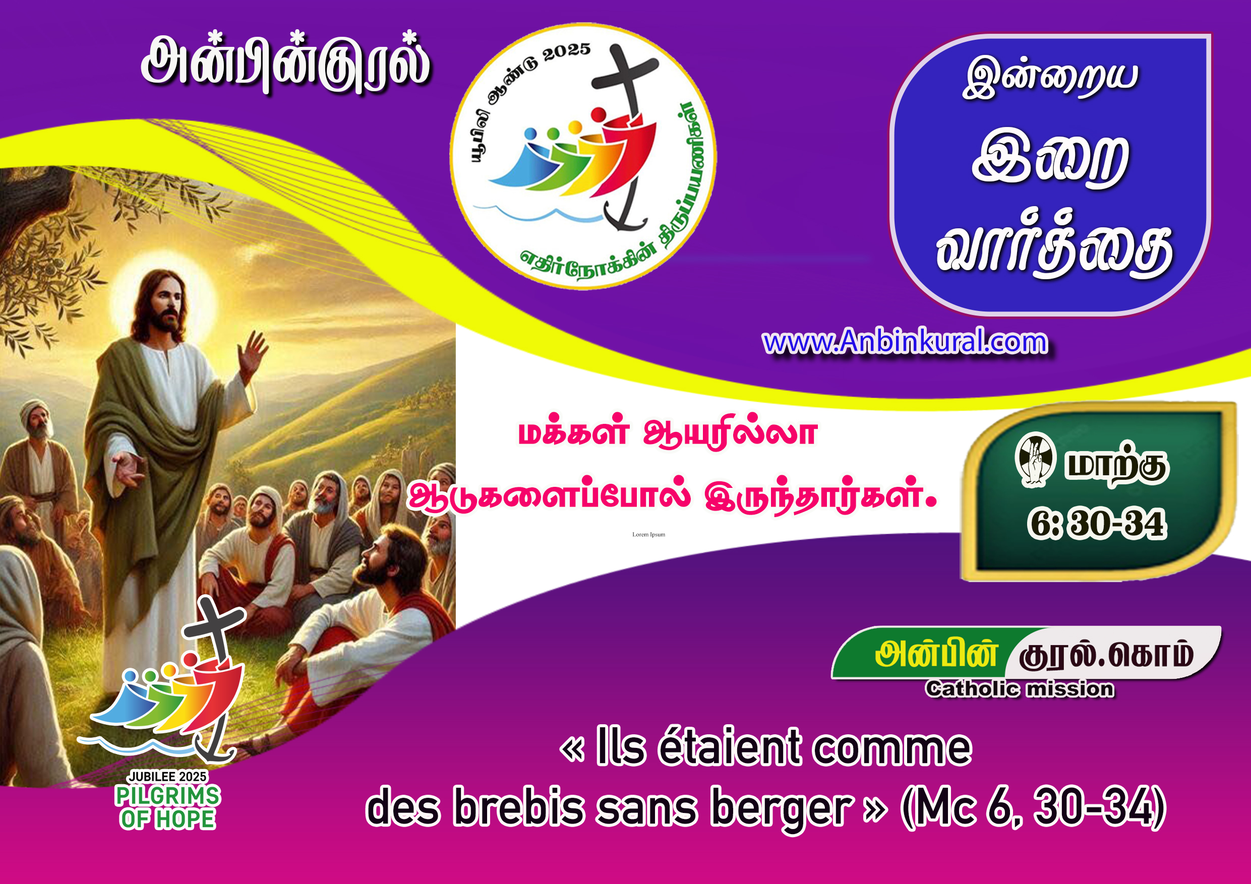 ✠ மாற்கு எழுதிய தூய நற்செய்தியிலிருந்து வாசகம் 6: 30-34
