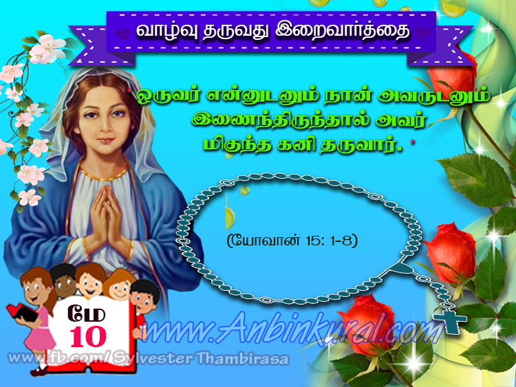 இயேசு தம் சீடரை நோக்கிக் கூறியது: “உண்மையான திராட்சைக் கொடிநானே. என் தந்தையே அதை நட்டு வளர்ப்பவர். என்னிடமுள்ள கனி கொடாத கிளைகள் அனைத்தையும் அவர் தறித்துவிடுவார். கனி தரும் அனைத்துக் கிளைகளையும் மிகுந்த கனி தருமாறு கழித்துவிடுவார். நான் சொன்ன வார்த்தைகளால் நீங்கள் ஏற்கெனவே தூய்மையாய் இருக்கிறீர்கள். நான் உங்களோடு இணைந்து இருப்பது போல நீங்களும் என்னோடு இணைந்து இருங்கள். கிளைகள் திராட்சைக் கொடியோடு இணைந்து இருந்தாலன்றித் தானாகக் கனி தர இயலாது. அதுபோல நீங்களும் என்னோடு இணைந்திருந்தாலன்றிக் கனி தர இயலாது. நானே திராட்சைக் கொடி; நீங்கள் அதன் கிளைகள். ஒருவர் என்னுடனும் நான் அவருடனும் இணைந்திருந்தால் அவர் மிகுந்த கனி தருவார். என்னைவிட்டுப் பிரிந்து உங்களால் எதுவும் செய்ய இயலாது. என்னோடு இணைந்து இராதவர் கிளையைப் போலத் தறித்து எறியப்பட்டு உலர்ந்து போவார். அக்கிளைகள் கூட்டிச் சேர்க்கப்பட்டு நெருப்பிலிட்டு எரிக்கப்படும். நீங்கள் என்னுள்ளும் என் வார்த்தைகள் உங்களுள்ளும் நிலைத்திருந்தால் நீங்கள் விரும்பிக் கேட்பதெல்லாம் நடக்கும். நீங்கள் மிகுந்த கனி தந்து என் சீடராய் இருப்பதே என் தந்தைக்கு மாட்சி அளிக்கிறது.”