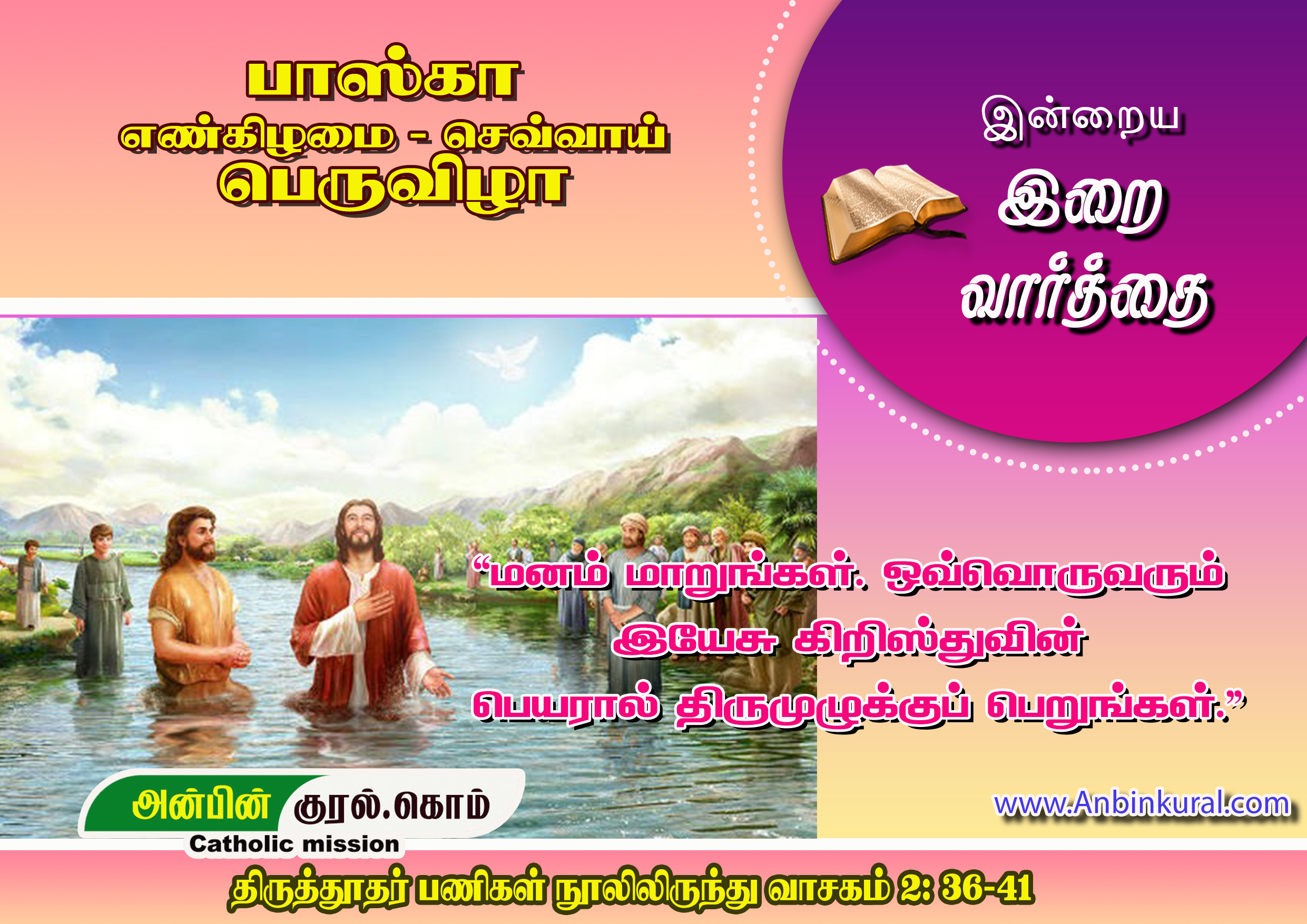 மனம் மாறுங்கள். ஒவ்வொருவரும் இயேசு கிறிஸ்துவின் பெயரால் திருமுழுக்குப் பெறுங்கள்.