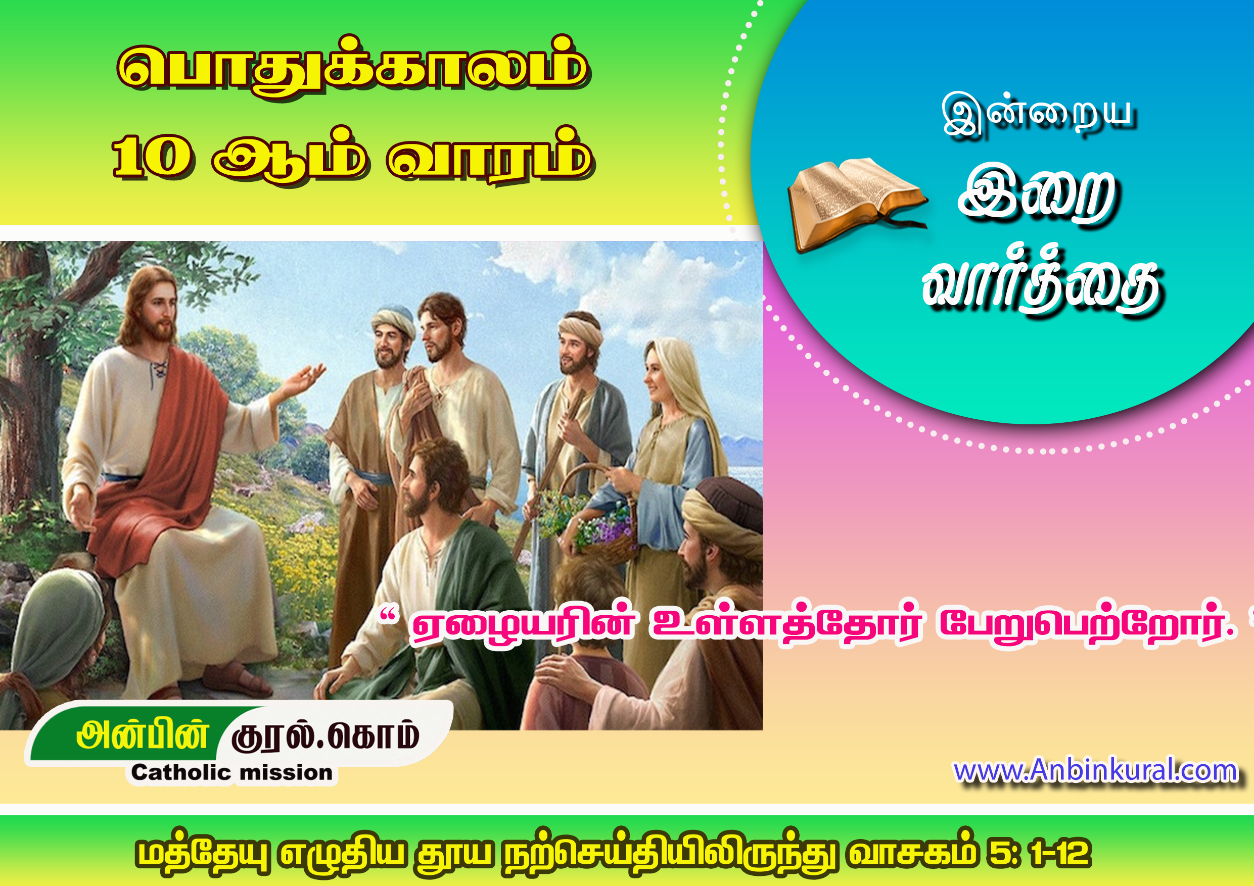 இயேசு மக்கள் கூட்டத்தைக் கண்டு மலைமீது ஏறி அமர, அவருடைய சீடர் அவரருகே வந்தனர். அவர் திருவாய் மலர்ந்து கற்பித்தவை: “ஏழையரின் உள்ளத்தோர் பேறுபெற்றோர்; ஏனெனில் விண்ணரசு அவர்களுக்கு உரியது. துயருறுவோர் பேறுபெற்றோர்; ஏனெனில் அவர்கள் ஆறுதல் பெறுவர். கனிவுடையோர் பேறுபெற்றோர்; ஏனெனில் அவர்கள் நாட்டை உரிமைச் சொத்தாக்கிக் கொள்வர். நீதி நிலைநாட்டும் வேட்கை கொண்டோர் பேறுபெற்றோர்; ஏனெனில் அவர்கள் நிறைவு பெறுவர். இரக்கமுடையோர் பேறுபெற்றோர்; ஏனெனில் அவர்கள் இரக்கம் பெறுவர். தூய்மையான உள்ளத்தோர் பேறுபெற்றோர்; ஏனெனில் அவர்கள் கடவுளைக் காண்பர். அமைதி ஏற்படுத்துவோர் பேறுபெற்றோர்; ஏனெனில் அவர்கள் கடவுளின் மக்கள் என அழைக்கப்படுவர். நீதியின் பொருட்டுத் துன்புறுத்தப்படுவோர் பேறுபெற்றோர்; ஏனெனில் விண்ணரசு அவர்களுக்கு உரியது.