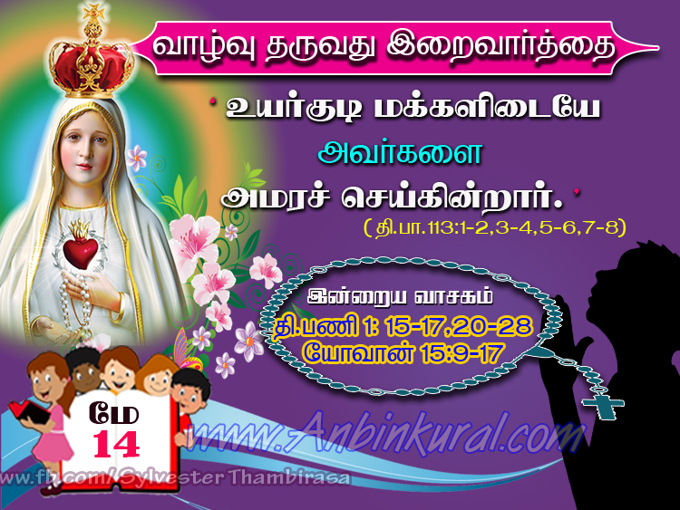 இயேசு தம் சீடரை நோக்கிக் கூறியது: “என் தந்தை என்மீது அன்பு கொண்டுள்ளது போல நானும் உங்கள்மீது அன்பு கொண்டுள்ளேன். என் அன்பில் நிலைத்திருங்கள். நான் என் தந்தையின் கட்டளைகளைக் கடைப்பிடித்து அவரது அன்பில் நிலைத்திருப்பது போல நீங்களும் என் கட்டளைகளைக் கடைப்பிடித்தால் என் அன்பில் நிலைத்திருப்பீர்கள். என் மகிழ்ச்சி உங்களுள் இருக்கவும் உங்கள் மகிழ்ச்சி நிறைவு பெறவுமே இவற்றை உங்களிடம் சொன்னேன்.