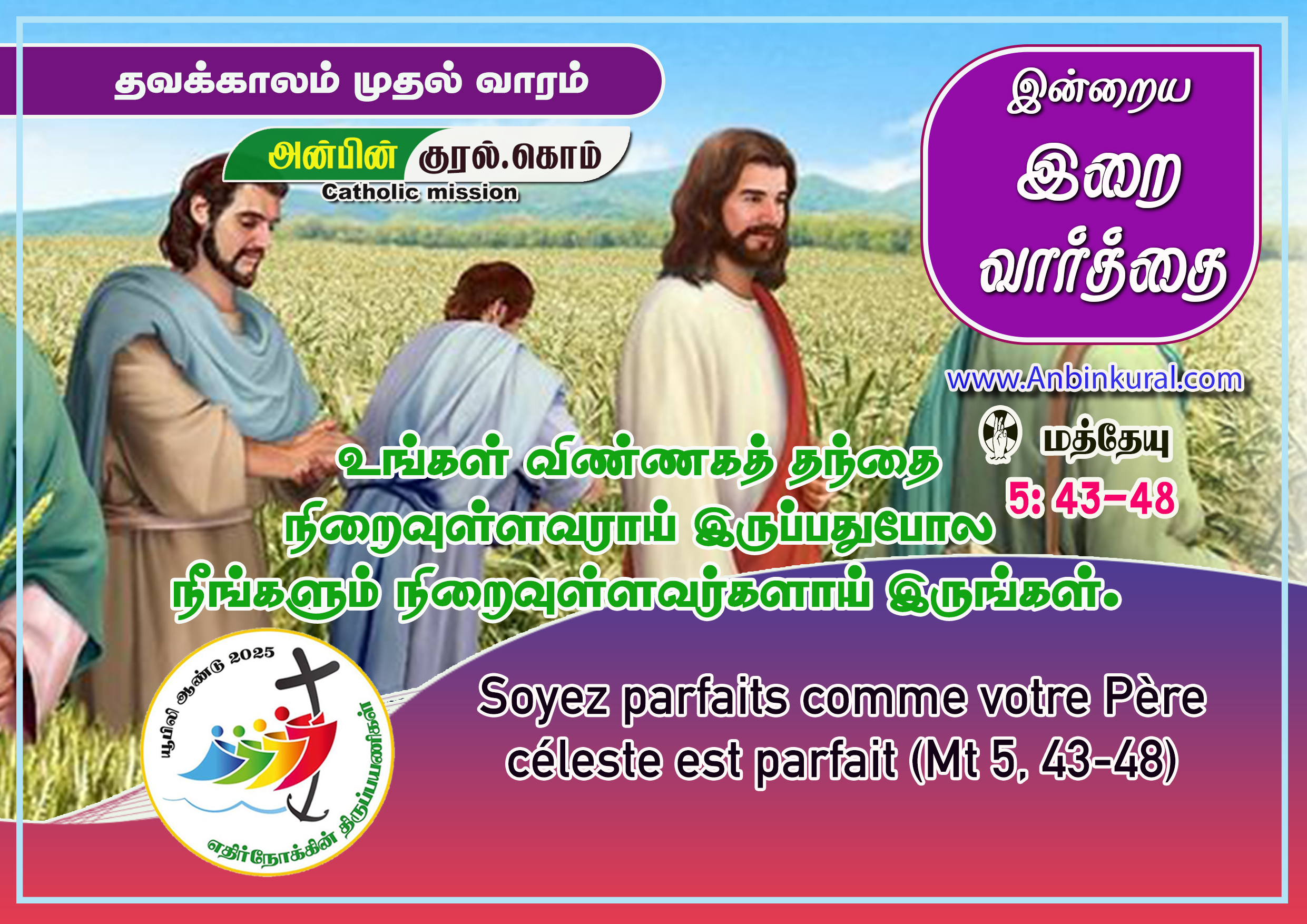 உங்கள் விண்ணகத் தந்தை நிறைவுள்ளவராய் இருப்பதுபோல நீங்களும் நிறைவுள்ளவர்களாய் இருங்கள்.