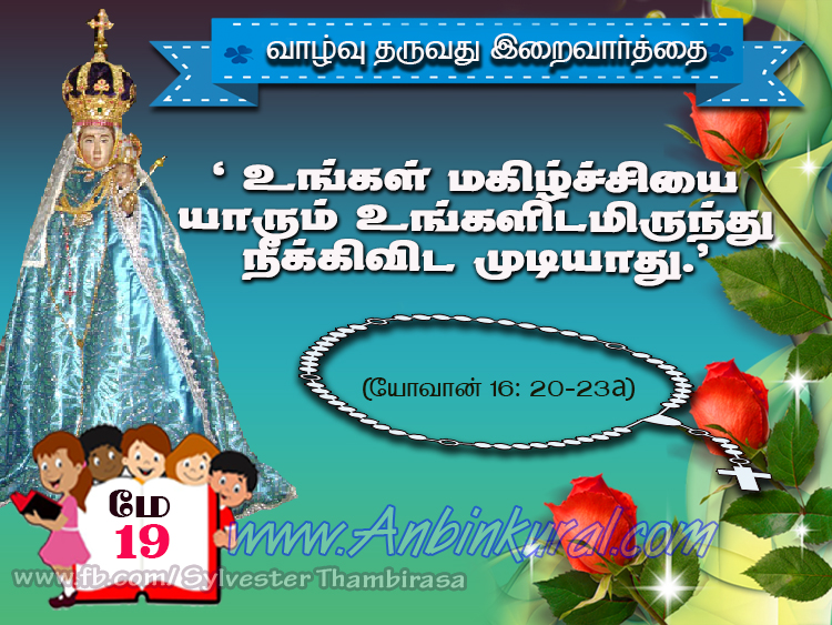 பிள்ளையைப் பெற்றெடுக்கும்போது தாய் தனக்குப் பேறுகாலம் வந்துவிட்டதால் வேதனை அடைகிறார். ஆனால் பிள்ளையைப் பெற்றெடுத்த பின்பு உலகில் ஒரு மனித உயிர் தோன்றியுள்ளது என்னும் மகிழ்ச்சியால் தம் வேதனையை அவர் மறந்துவிடுகிறார். இப்போது நீங்களும் துயருறுகிறீர்கள். ஆனால் நான் உங்களை மீண்டும் காணும்போது உங்கள் உள்ளம் மகிழ்ச்சி அடையும். உங்கள் மகிழ்ச்சியை யாரும் உங்களிடமிருந்து நீக்கிவிட முடியாது. அந்நாளில் நீங்கள் என்னிடம் எதையும் கேட்கமாட்டீர்கள்.”