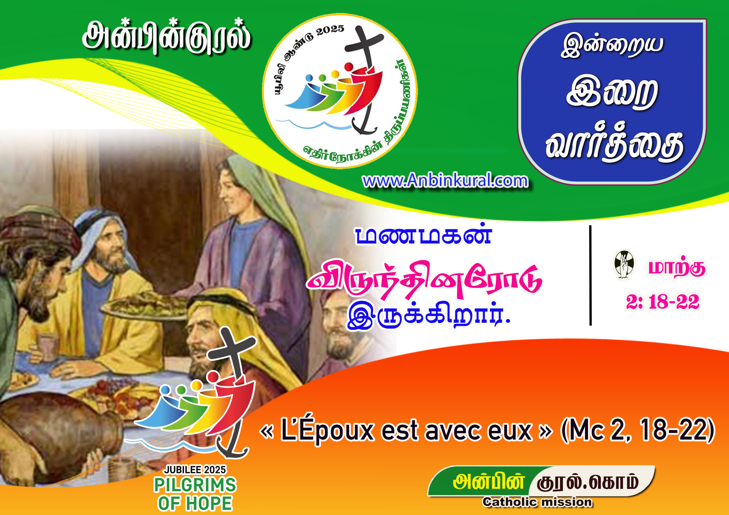 ✠ மாற்கு எழுதிய தூய நற்செய்தியிலிருந்து வாசகம் 2: 18-22
