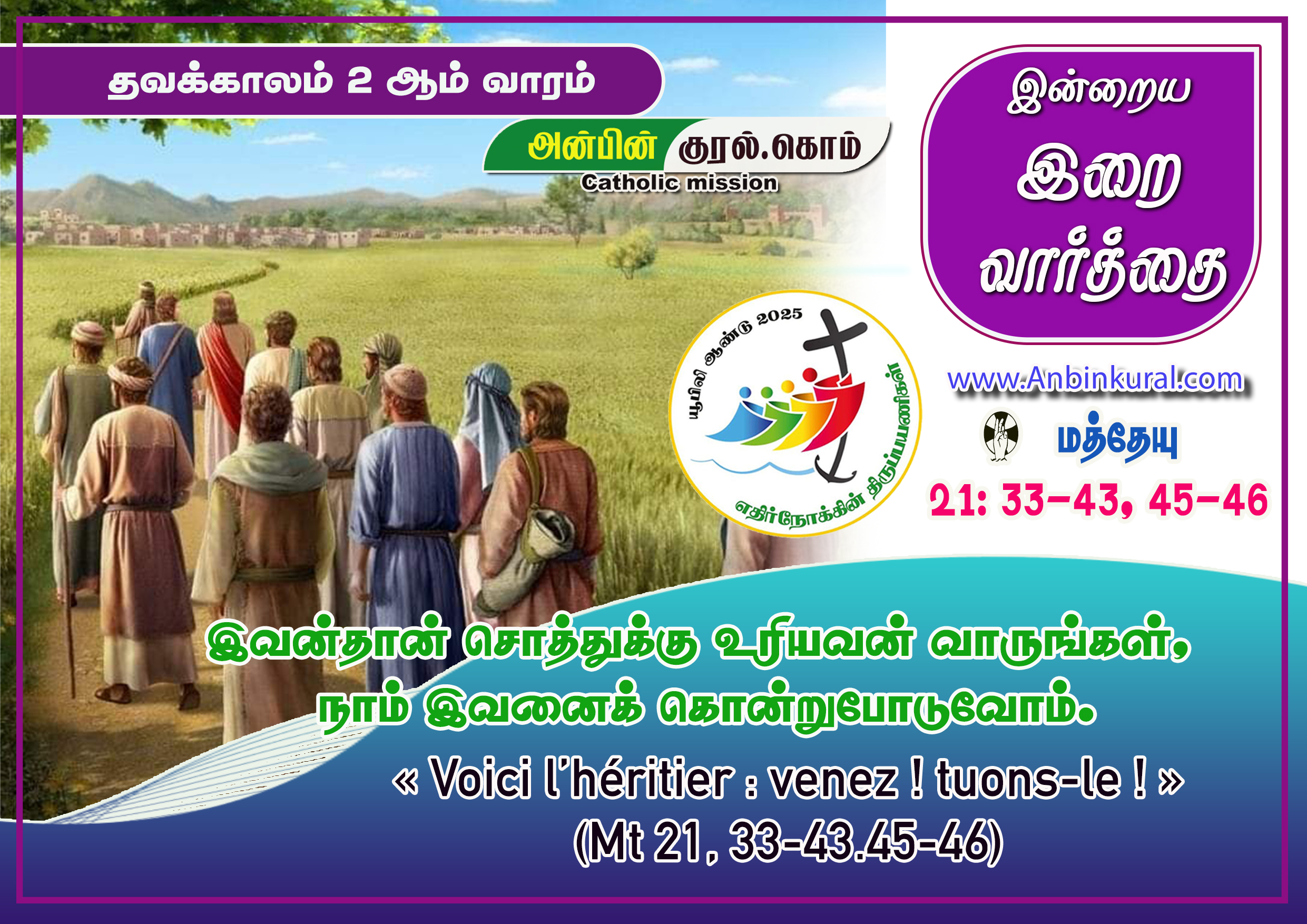 ✠ மத்தேயு எழுதிய தூய நற்செய்தியிலிருந்து வாசகம் 21: 33-43, 45-46