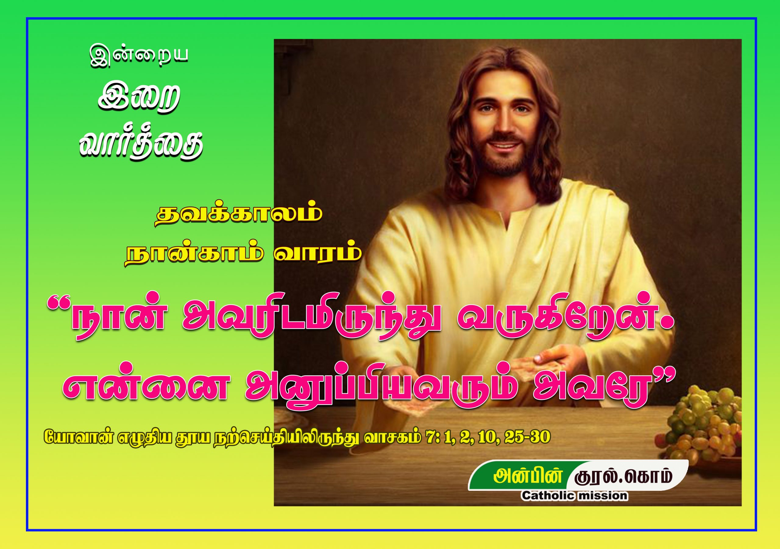 ✠ யோவான் எழுதிய தூய நற்செய்தியிலிருந்து வாசகம் 7: 1, 2, 10, 25-30