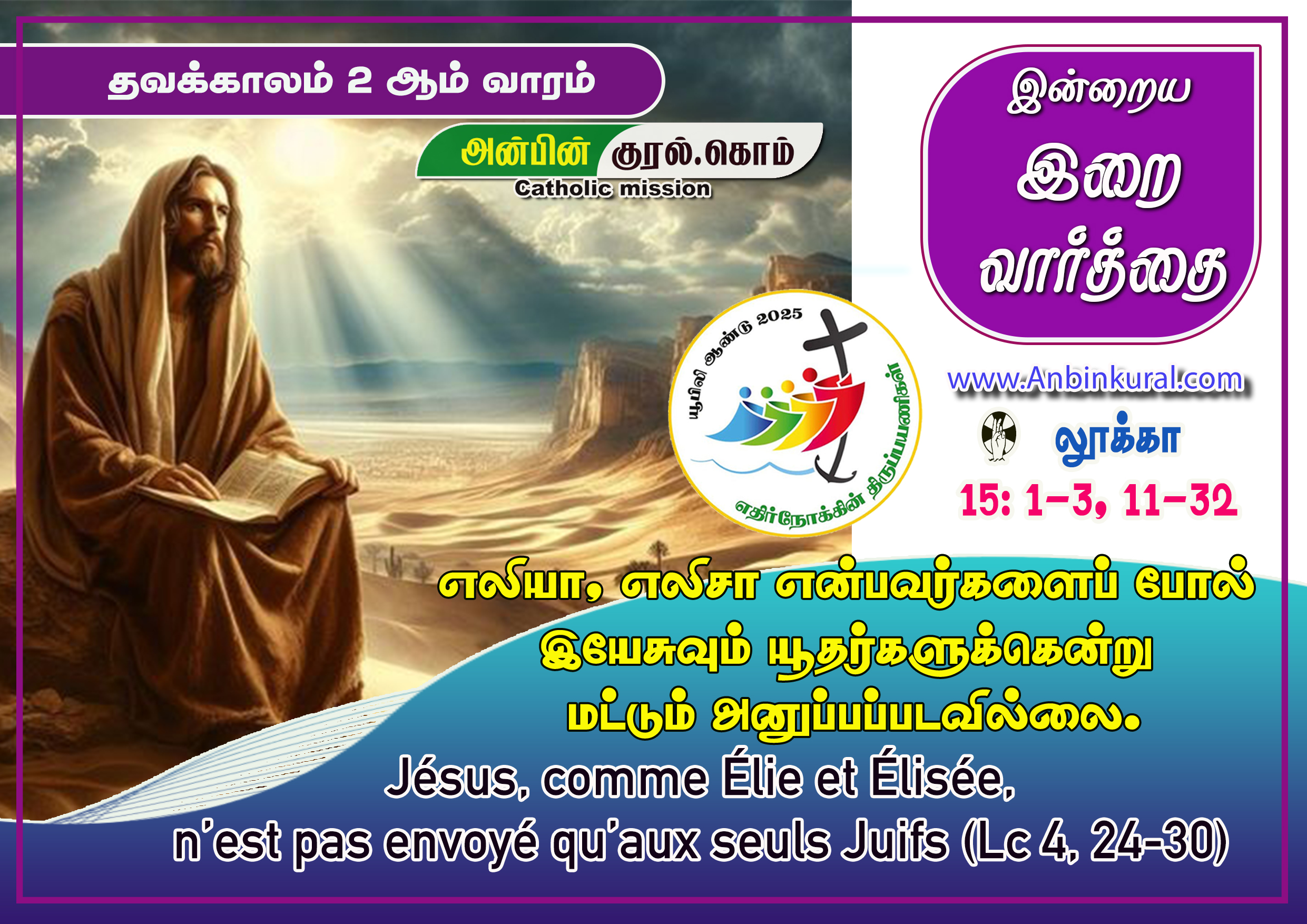 எலியா, எலிசா என்பவர்களைப் போல் இயேசுவும் யூதர்களுக்கென்று மட்டும் அனுப்பப்படவில்லை.