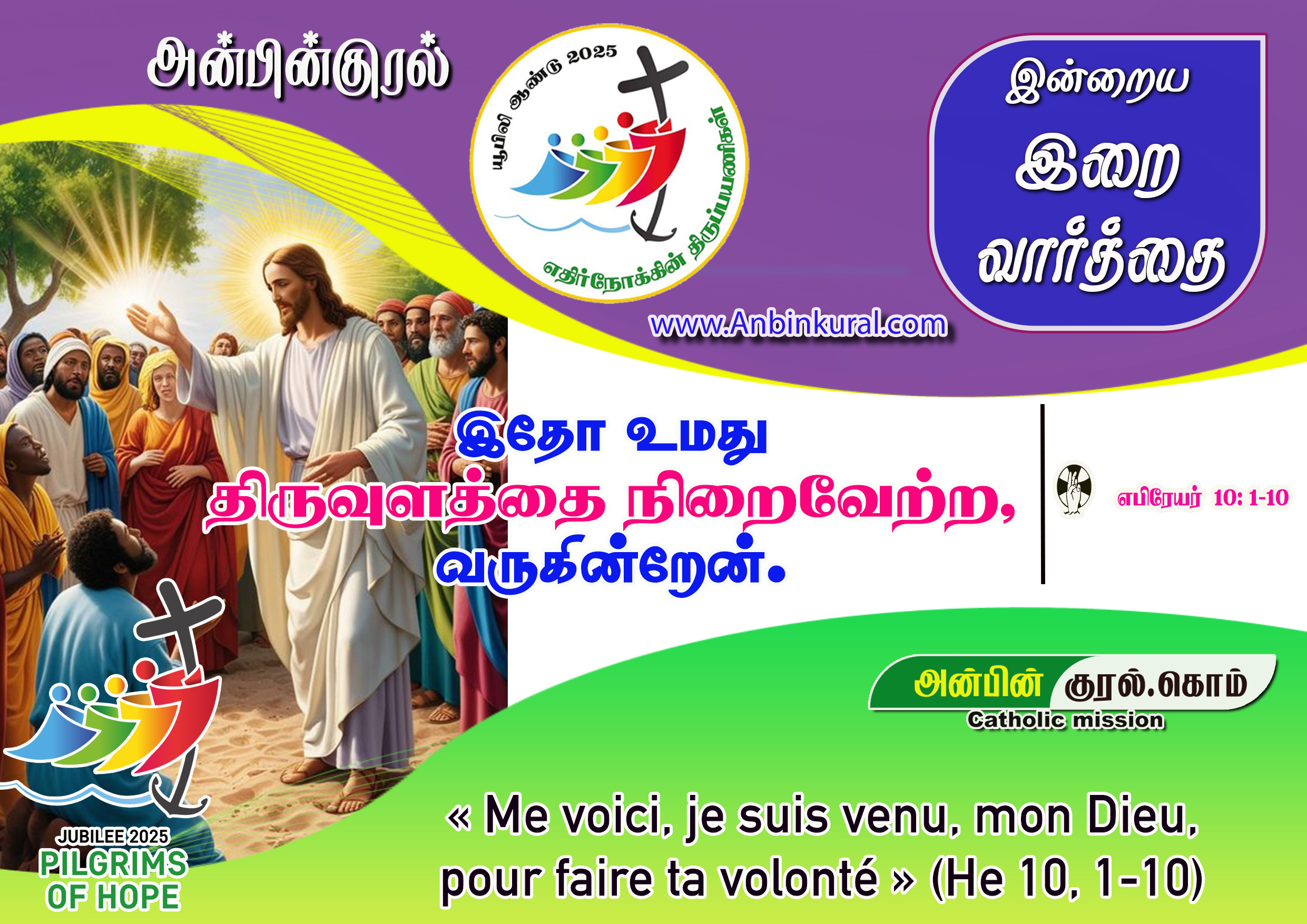 இதோ உமது திருவுளத்தை நிறைவேற்ற, வருகின்றேன்.